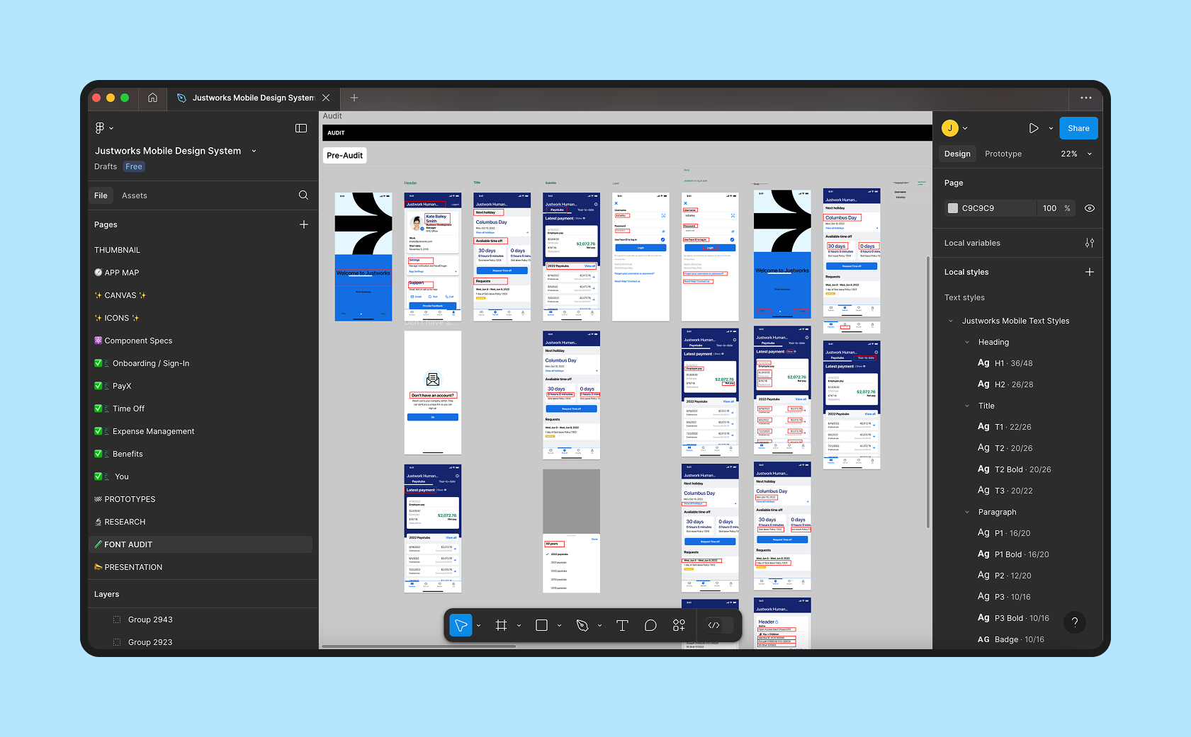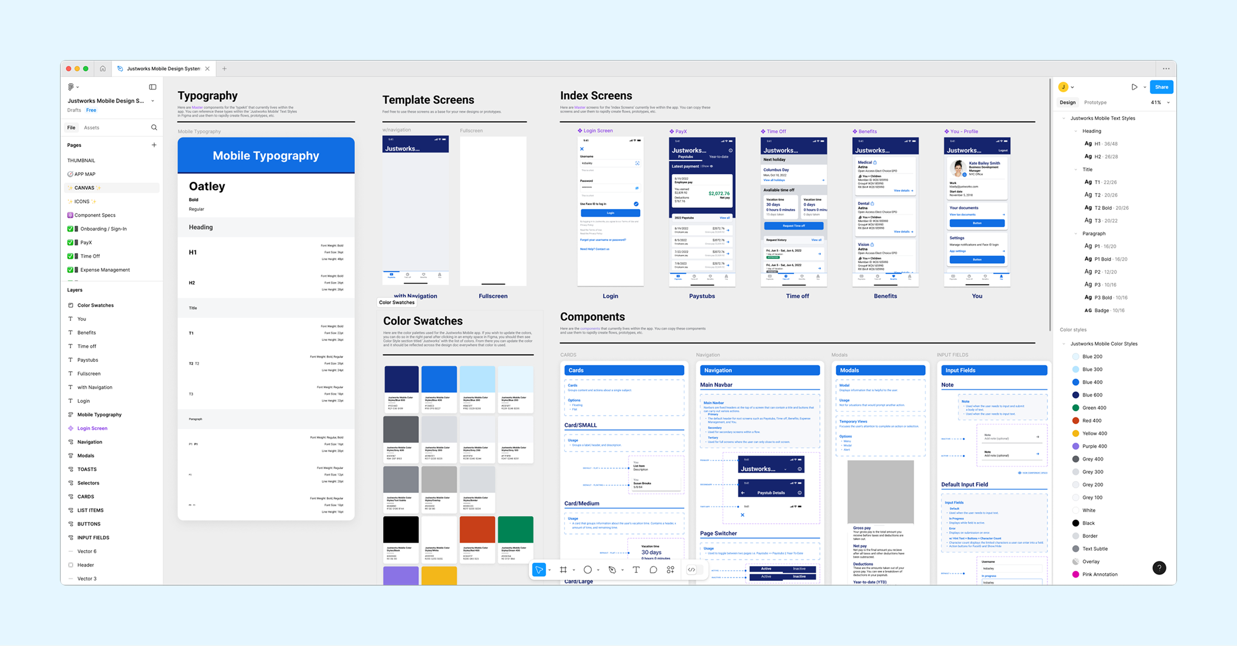 A key challenge in this phase was Justworks transition from Sketch to Figma as their primary design tool. Some designers, including my partner, were still gaining proficiency in Figma. Summoning my Figma wizardry and passion for teaching and mentorship, (🧙🏾♂️ + 👨🏾🏫 = Design Alchemist? ), I optimized our Figma workspace and design system to improve its accessibility for our team. I integrated features such as auto-layout for responsive components and standardized their color and typography kit into local styles. I also developed a sticker sheet of Justworks’ primary index screens to support faster prototyping and collaboration! I worked closely with my design partner, offering Figma walkthroughs, tutorials, advice and guidance as we designed and chilled in Zoom! ;)