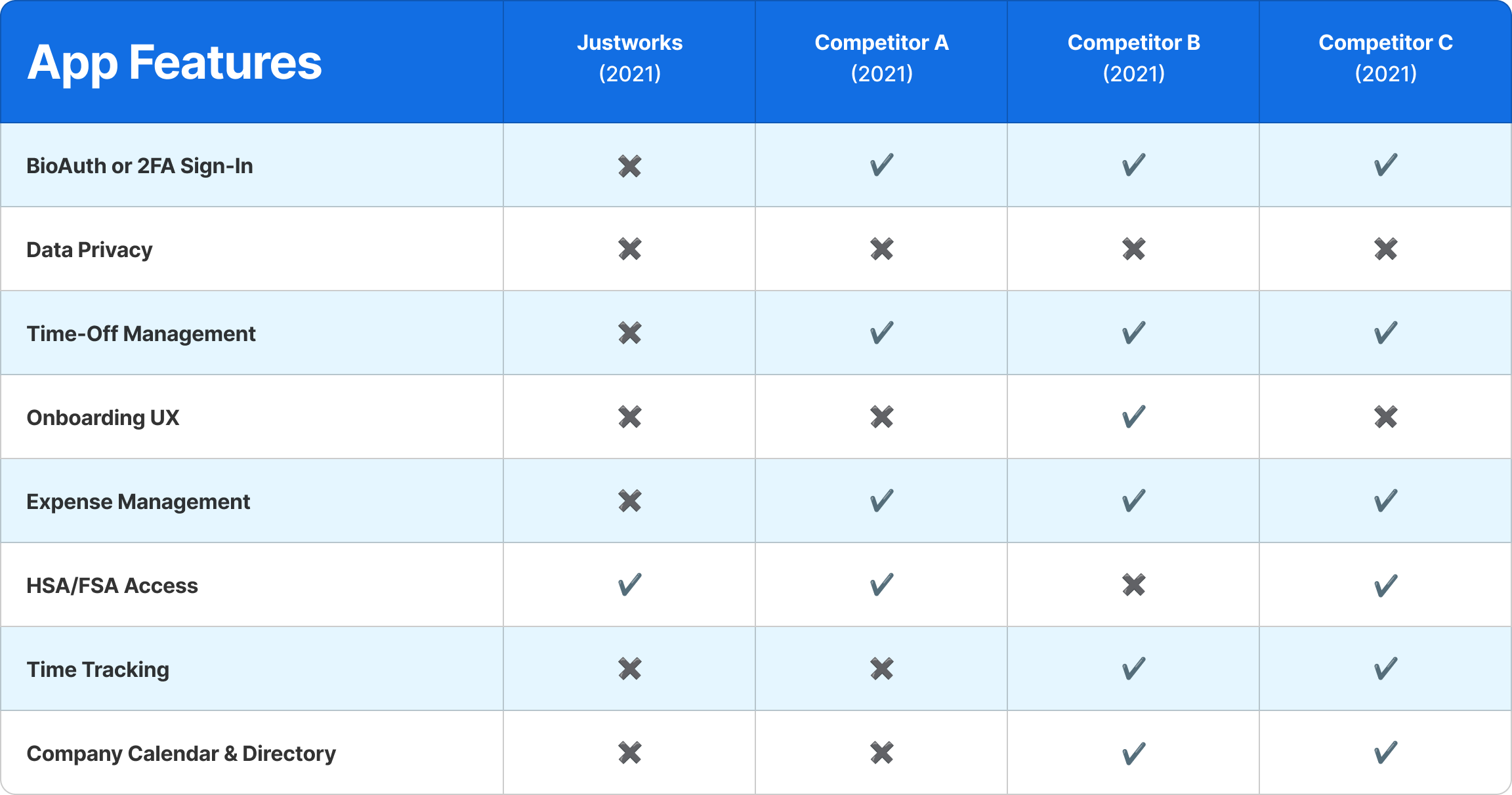 Justworks’ mobile app would see higher adoption and retention because it was more aesthetically pleasing than most other competitor HR apps on the market.